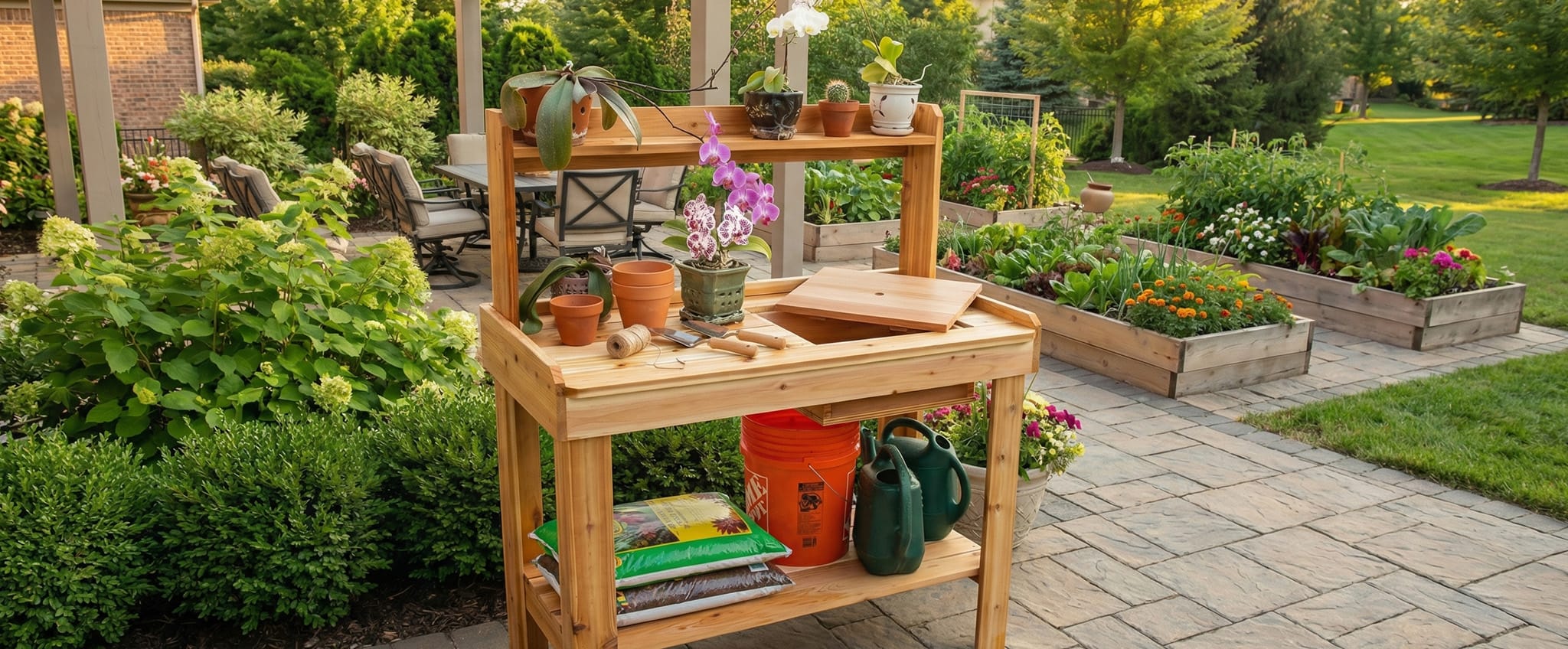 4×2 Western Red Cedar Potting Bench – Outdoor Garden Workstation
