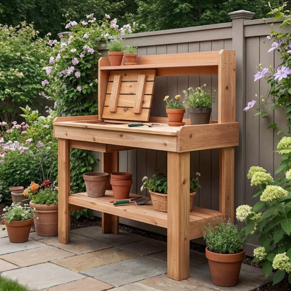 Whether you’re preparing seedlings, potting herbs, or hosting as an outdoor bar or prep station, this potting bench delivers durability, beauty, and everyday functionality.